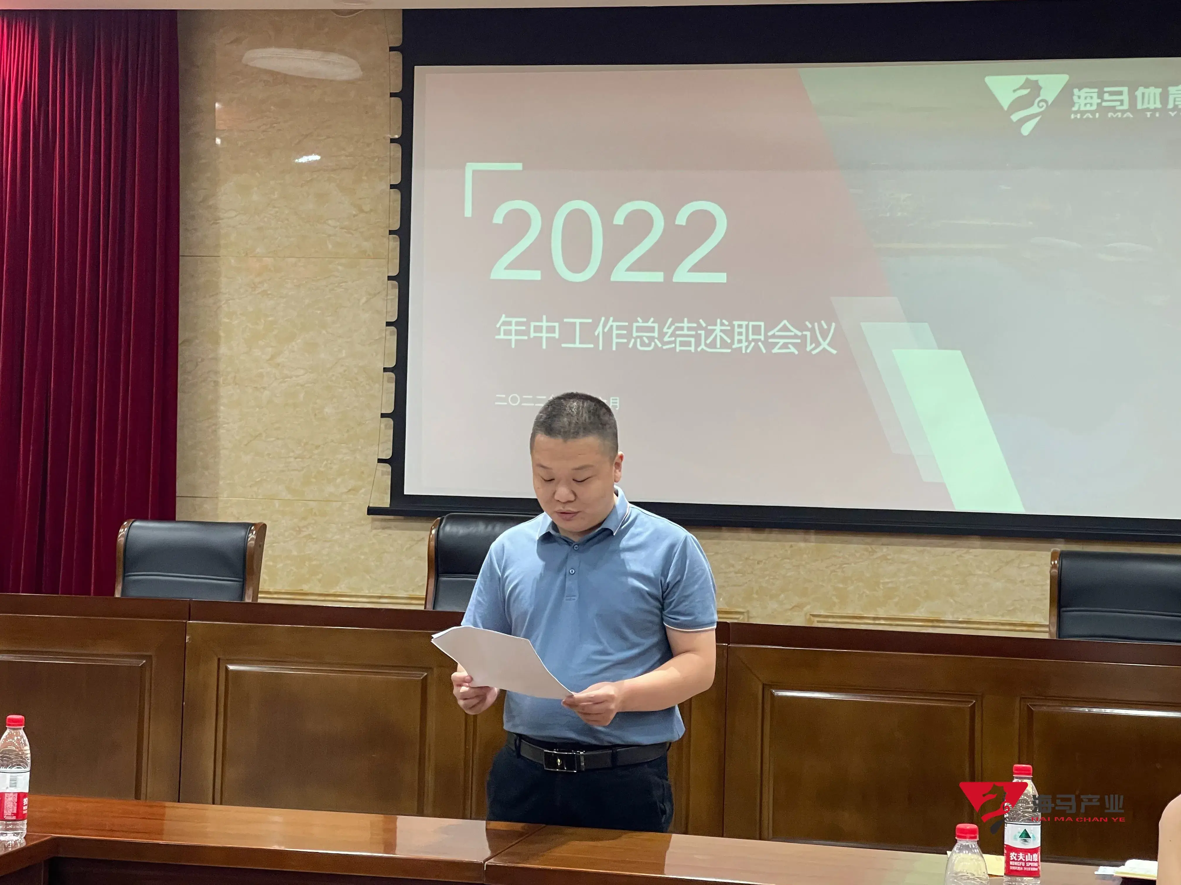 2022年6月29日下午,极悦娱乐文化产业集团在山东省体育中心二楼会议室召开年中工作总结述职会议,会议对上半年工作成果进行了总结汇报,并就下半年重点工作进行部署。总经理王海民出席了本次会议。会议由综合管理部负责人王永健主持。